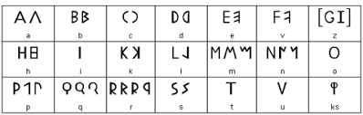 Latin alphabet (23 characters) used in ancient .